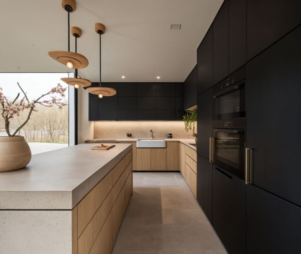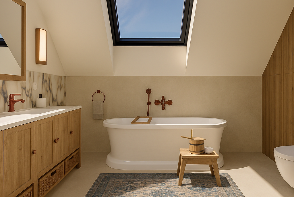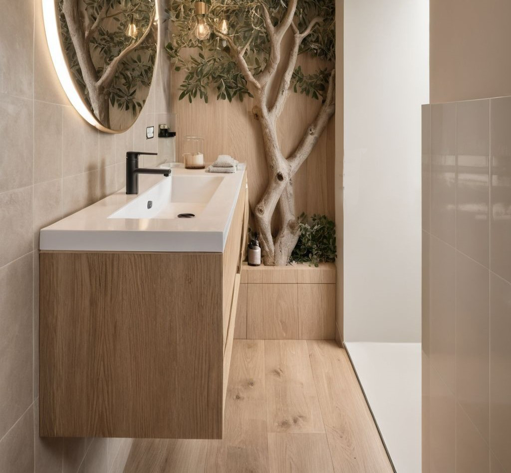 Projekt inspirowany naturalnością i prostotą formy. Ciepłe materiały, stonowana kolorystyka i ponadczasowe detale tworzą harmonijną przestrzeń, w której nowoczesny design spotyka się z rustykalnym charakterem.