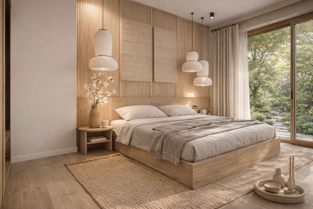 STen apartament został zaprojektowany jako idealne połączenie prostoty i natury. Użyliśmy neutralnych tonów, miękkich tekstur i naturalnych materiałów do wszystkich akcesoriów, ścian i podłóg. Bardzo ponadczasowy styl japandi pozwoli właścicielowi poczuć zen w środku miasta.